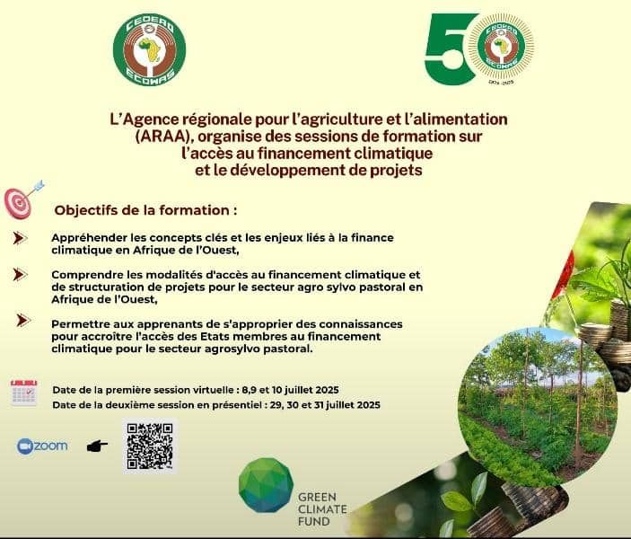 Opportunité de formation organisée par l’Agence régionale pour l’agriculture et l’alimentation (ARAA) de la CEDEAO, avec le soutien du Green Climate Fund.