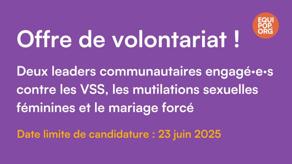 🔸 Profil : défendre l’égalité de genre ; être issu·e·s de communautés touchées par les mutilations sexuelles féminines (MSF) et/ou mariages forcés ; résider dans le département du Rhône ou en Ile-de-France