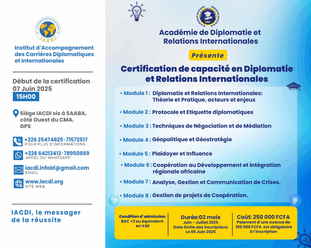 Rejoignez la 2e Édition de la Certification de Capacité en Diplomatie et Relations Internationales (CC-DRI)