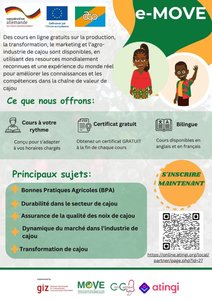 Vous travaillez dans la production, la transformation ou le marketing du cajou ? Ou vous souhaitez renforcer vos compétences dans ce secteur clé pour l’économie locale ? Alors ces cours en ligne sont faits pour vous ! 💻📚